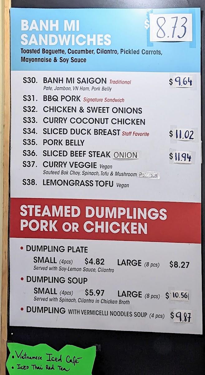 Items like the Chicken Coconut Curry Soup and the BBQ Pork Sandwich highlight the range—from warm, fragrant broths perfect for chilly afternoons or when you want something soothing, to crisp baguette sandwiches that provide a convenient and filling option for busy midday breaks. Fresh Shrimp Rolls add a refreshing choice when you want something lighter but still punchy with flavor.