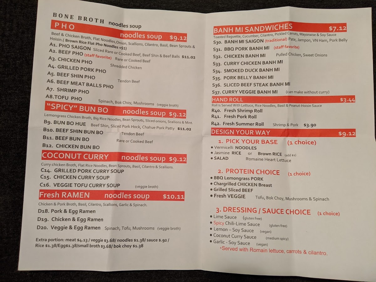 Boilicious Vietnamese Takeout offers a straightforward menu that focuses on comforting, satisfying dishes you can enjoy on the go. The selection strikes a balance between hearty noodle and rice bowls, flavorful sandwiches, and light, fresh bites. Whether you’re looking for a quick lunch during a busy day or a comforting meal to take home, the menu fits well with the casual, no-frills atmosphere of this small spot.